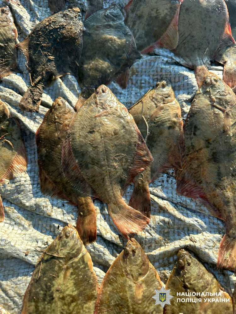 На місце події прибула слідчо-оперативна група, яка вилучила у чоловіка риболовний костюм, надувний човен, 17 сіток та 356 камбал глос. Незаконно виловлену рибу передано на зберігання спеціалізованій організації.