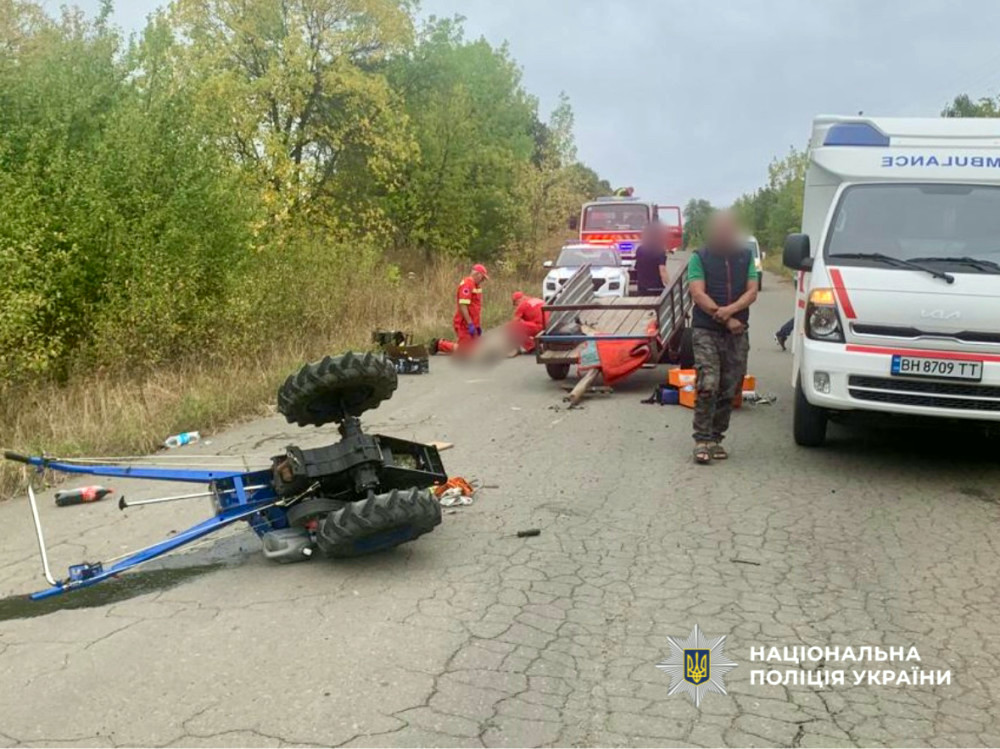 Правоохоронці з'ясували, що під час руху мотоблока з причепом, на якому, окрім 33-річного водія, перебували його дружина та дядько, відбулося від'єднання причепа від мотоблока. Внаслідок цього один з пасажирів отримав серйозні травми, від яких, на жаль, помер до прибуття швидкої допомоги.