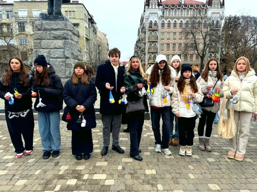 Учні Парламенту старшокласників м. Одеси разом з дітьми загиблих героїв прикрасили патріотичні ялинки на Алеї героїв власноруч виготовленими іграшками.