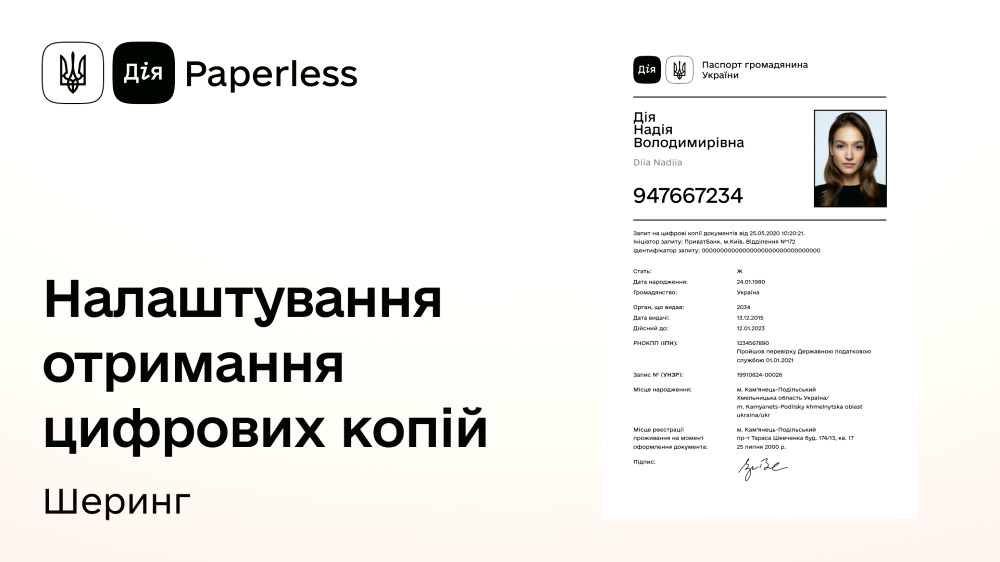 Сервіс шерингу документів через платформу Дія представляє собою інноваційний, простий та ефективний метод передачі електронних копій документів без необхідності використовувати ксерокси, сканери чи фотографувати паперові оригінали.