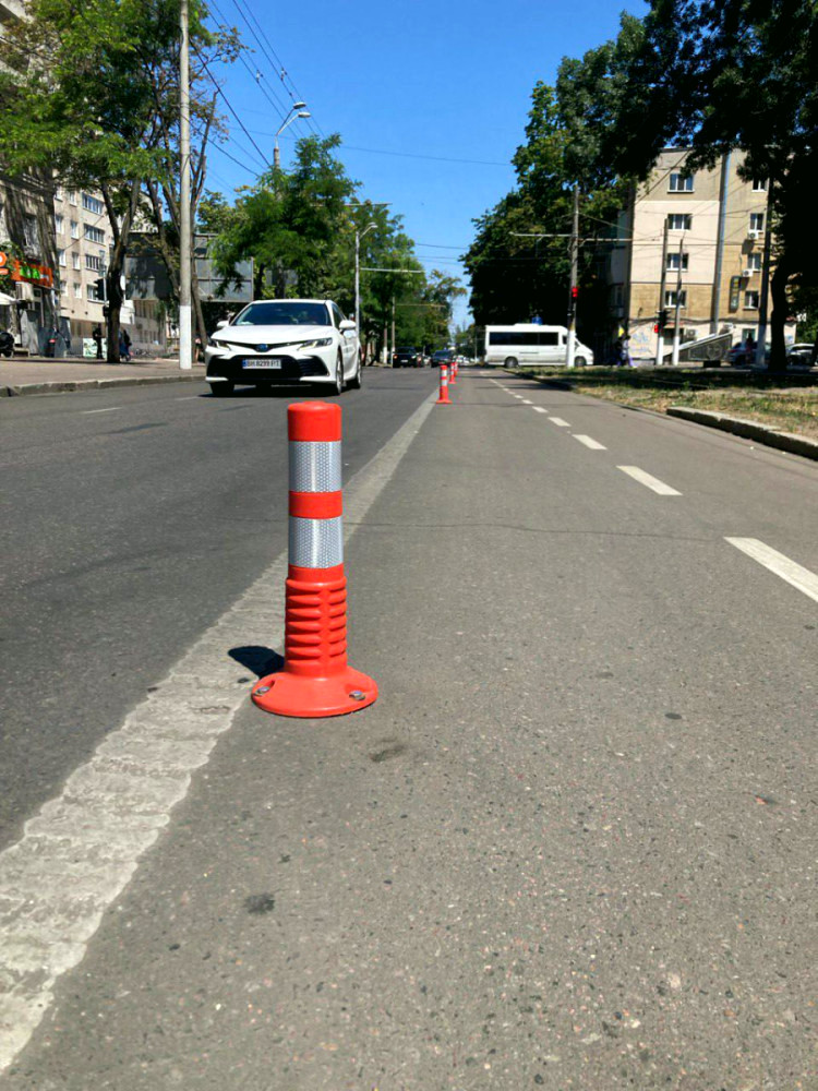 На даний момент завершено монтаж стовпчиків-делініаторів вздовж велосмуги на вул. Канатній, від вул. Пироговської до 2-ї станції Великого Фонтану.